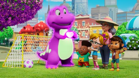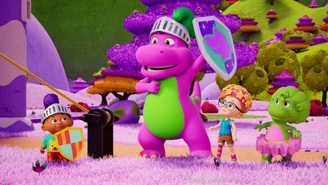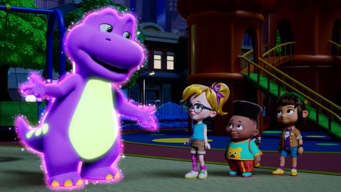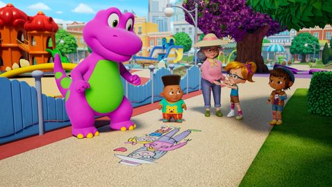 Barney, le dinosaure violet, chante et danse avec ses amis dans une plaine de jeux. À travers leurs aventures, il aide les tout-petits à comprendre leurs émotions et à apprendre le respect et l'amour des autres.