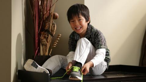 It's Kéliane's first soccer practice that shows us how to prepare. First she checks that she has the right equipment and tries it on before leaving. She takes the time to protect her legs by installing her shin guards. And you, are you ready?